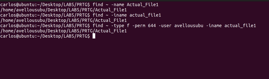 With the find command, you can combine multiple parameters together to make the search as specific as possible. Notice how I combined the parameters of “-f” stating that I am looking for a file and not a directory, “-perm 644” (more on that later but it is about permissions), “-user” (where the owner of the file had to be me) and then also used -iname.