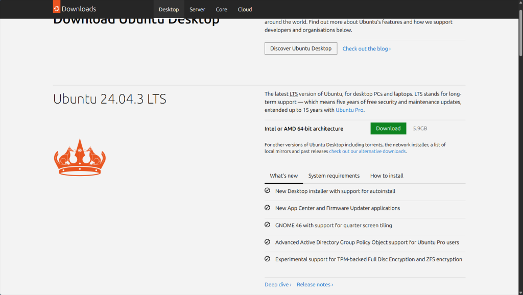 Then go to ubuntu.com and search for the latest Ubuntu ‘LTS’ (Long Term Support) version and download it!