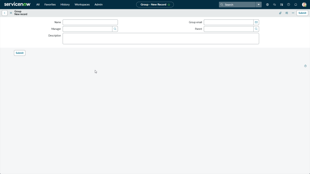 When a ticket is created, it gets assigned to a specific group based on the incident type. A password reset might go to Help Desk, while a server issue goes to the Network team. To create a new group, click the “New” button in the top right.