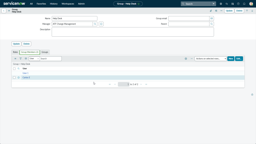 Now that we’ve created my user profile, the next step is to create an assignment group. In the image above, you can see all the different groups that can exist depending on the size and structure of your organization – Help Desk, the Network team, a team that only works with Databases in New York and so on.