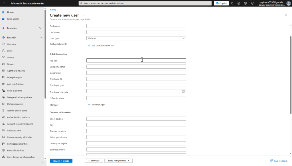 When creating a new user, notice that Azure does not allow you to create a weak password. Security is enforced by default at every step. In our on-prem AD environment, I had to create a Group Policy Object to specifically enforce password complexity. It’s already built in with Entra ID!