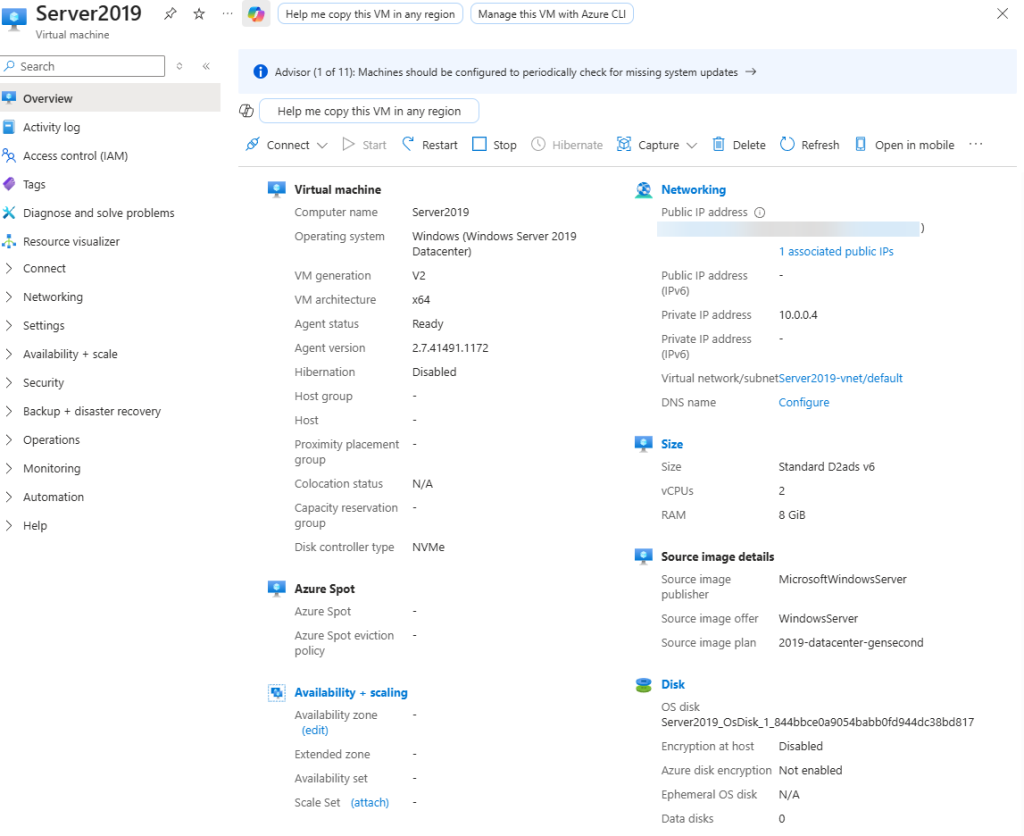 - Redundancy: Single instance (lab configuration; a production environment requires multi-zone redundancy or even regional – as you should never have a single point of failure in your critical infrastructure).