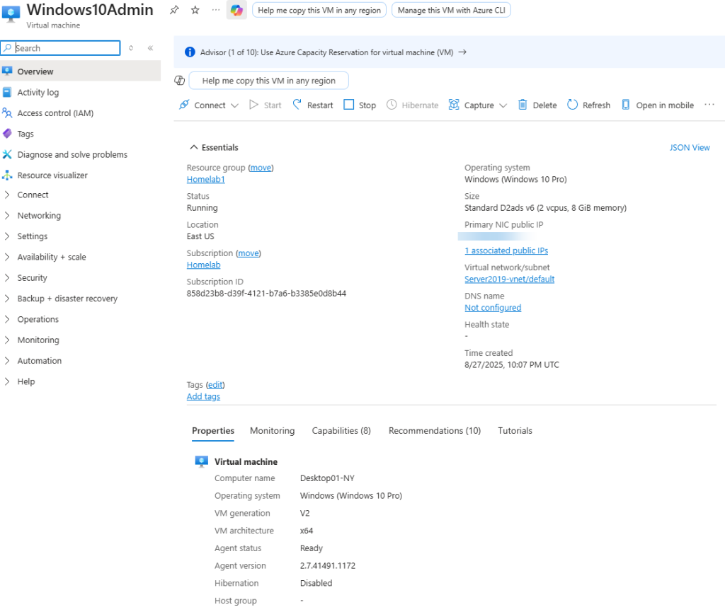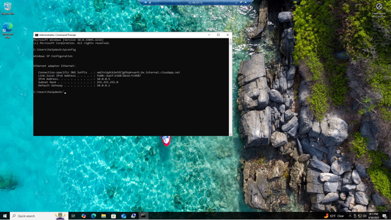 - Client Workstation: 10.0.0.5 (provided by Azure DHCP)