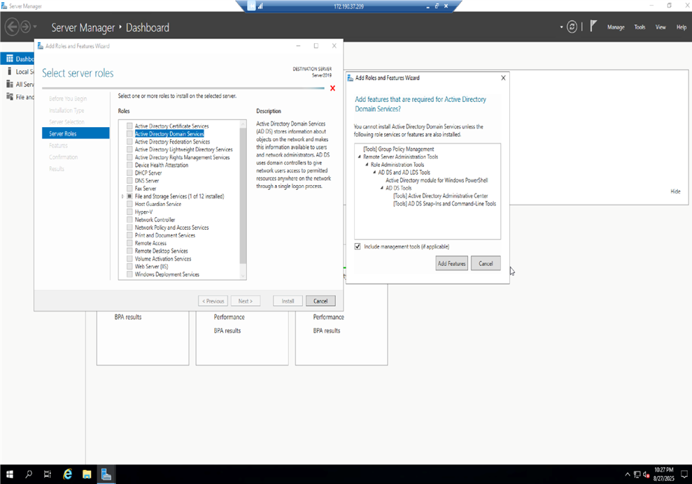 - Active Directory Domain Services (AD DS): Core directory services (hosting the AD database)
