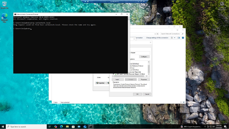 Since we’re on the same subnet, let’s see if our PC can ping the domain carlostech.local