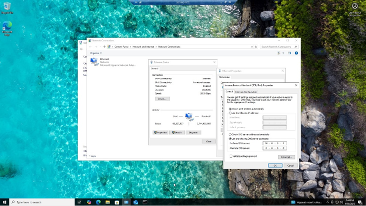 - To fix this, we go to Control Panel -> Network and Internet -> Change Adapter Settings -> IPv4 -> and manually add the DNS server. Here, we added our main server’s IP because not only did we add Active Directory services to it, but also DNS and File Shares. Our backup DNS servers will be Google’s at 8.8.8.8.